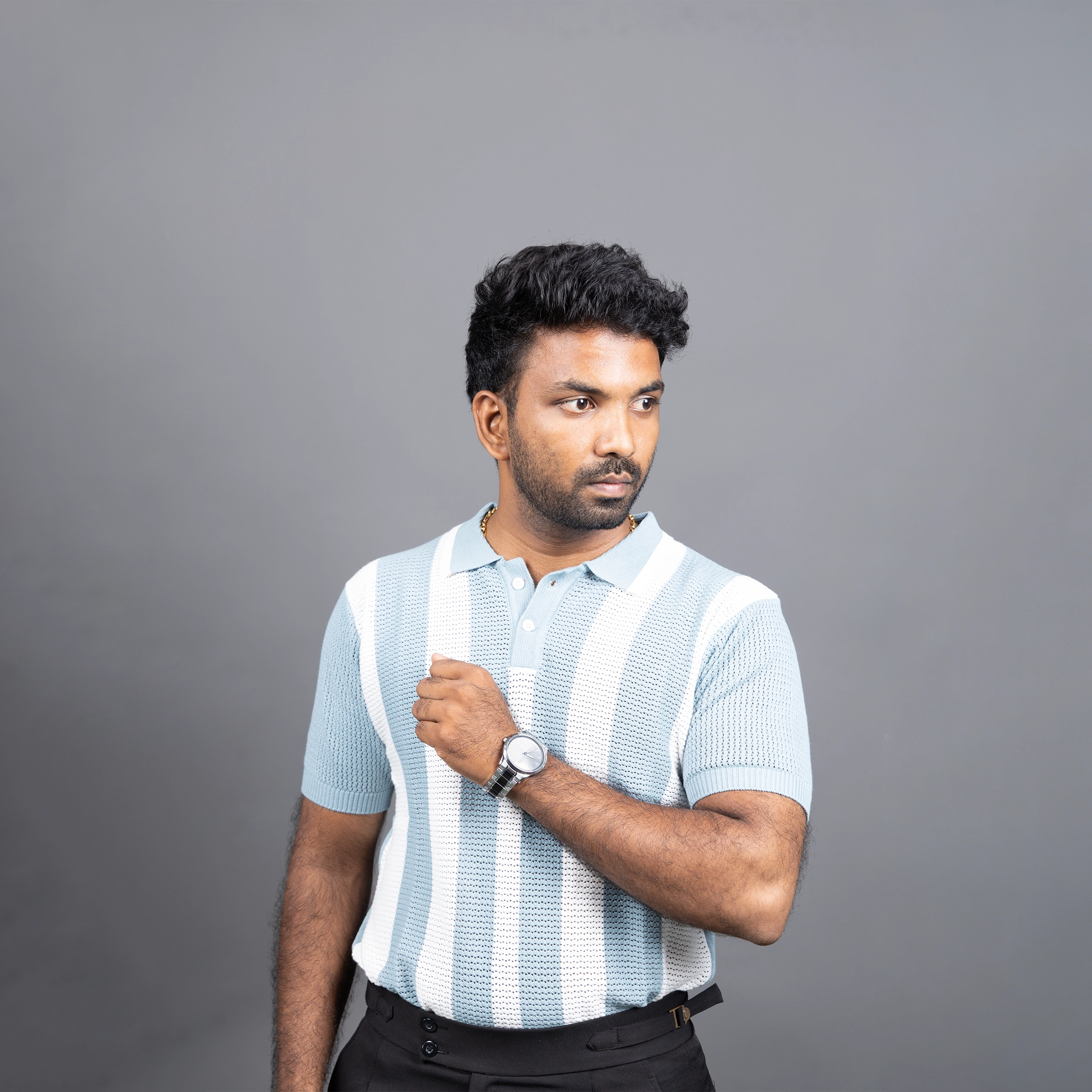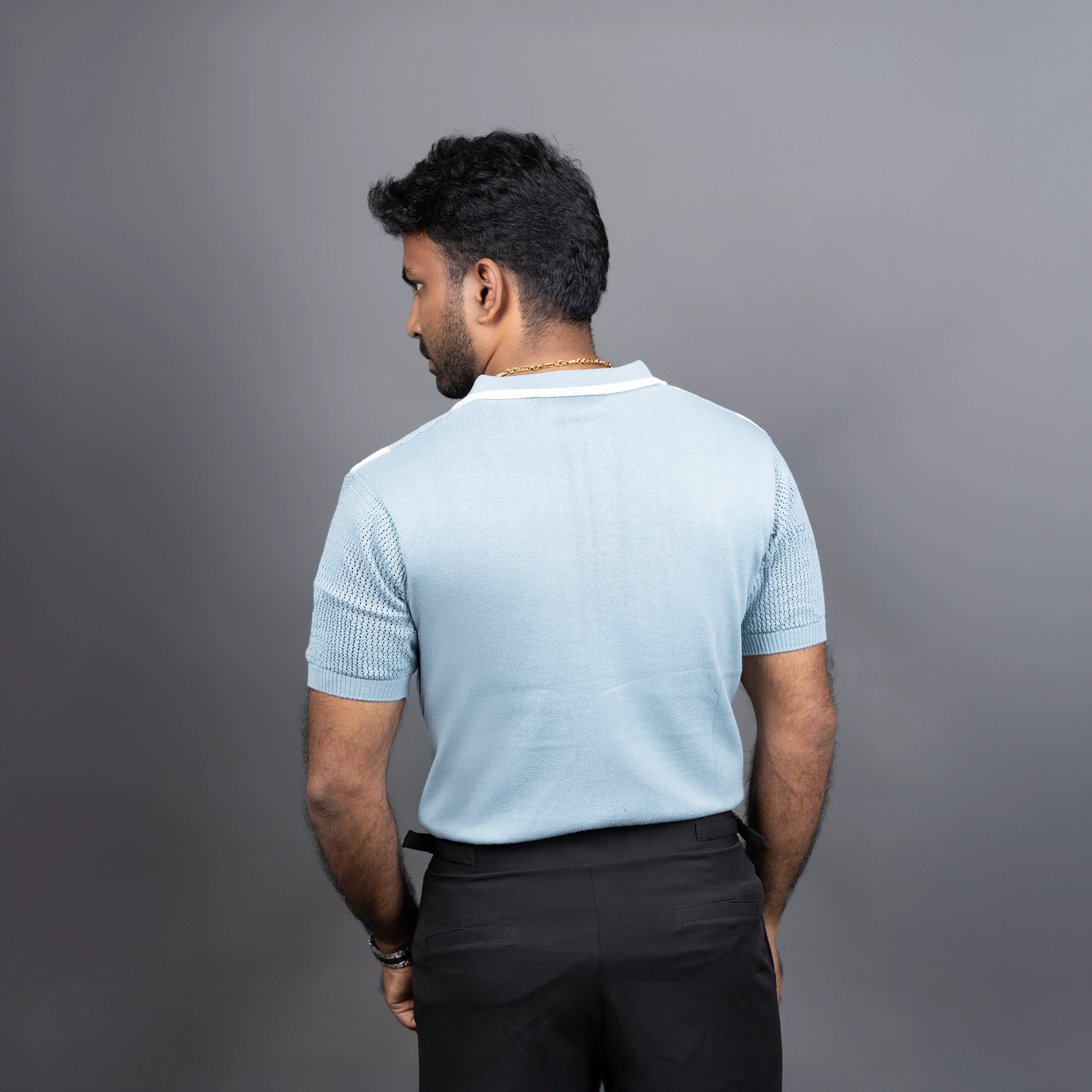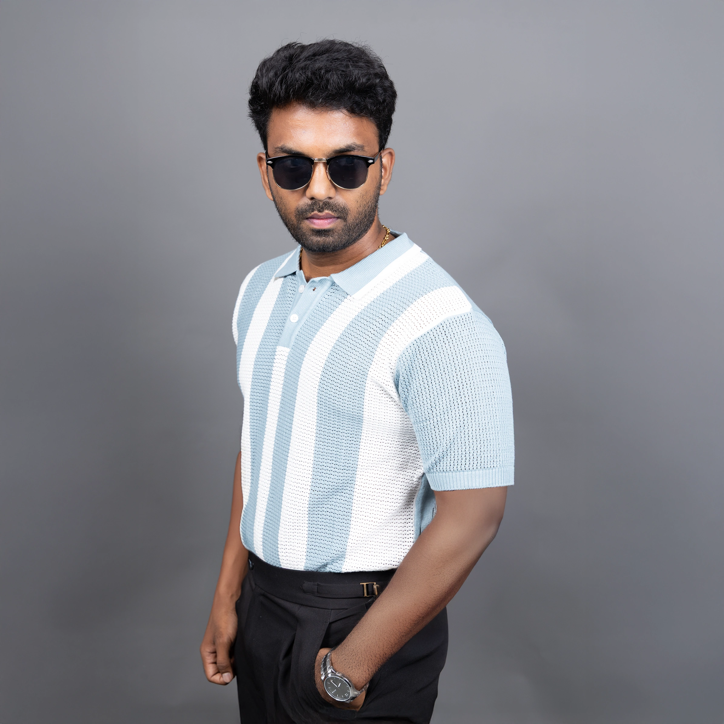 Light Blue and White Vertical Stripe Crochet PoloLight Blue and White Vertical Stripe Crochet Polo