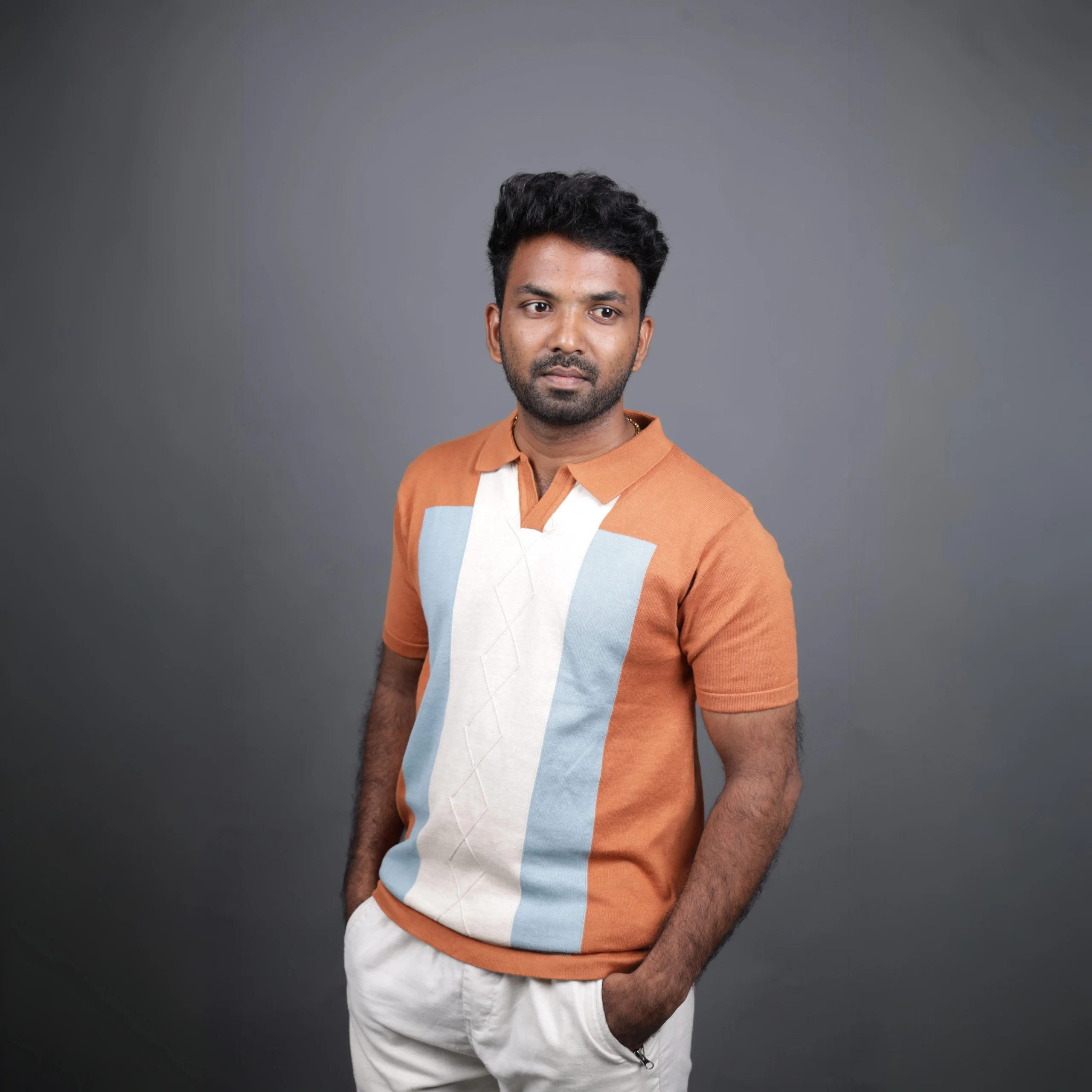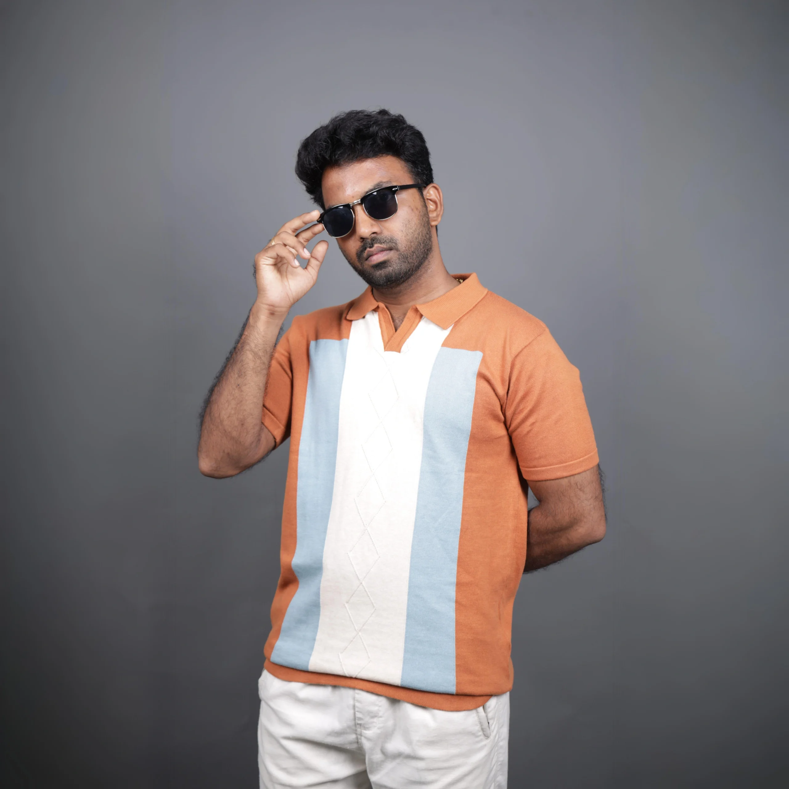 Step out in timeless style with our Men’s Retro Color Block Knit Polo. Crafted from a soft, breathable knit fabric, this polo features a distinctive color-blocked design in rich burnt orange, calming sky blue, and subtle cream accents. The classic collar and short sleeves offer a comfortable fit, making it perfect for both casual outings and smart-casual occasions. Its unique textured knit adds a touch of sophistication, ensuring you stand out. Pair it with chinos or denim for an effortlessly stylish look.