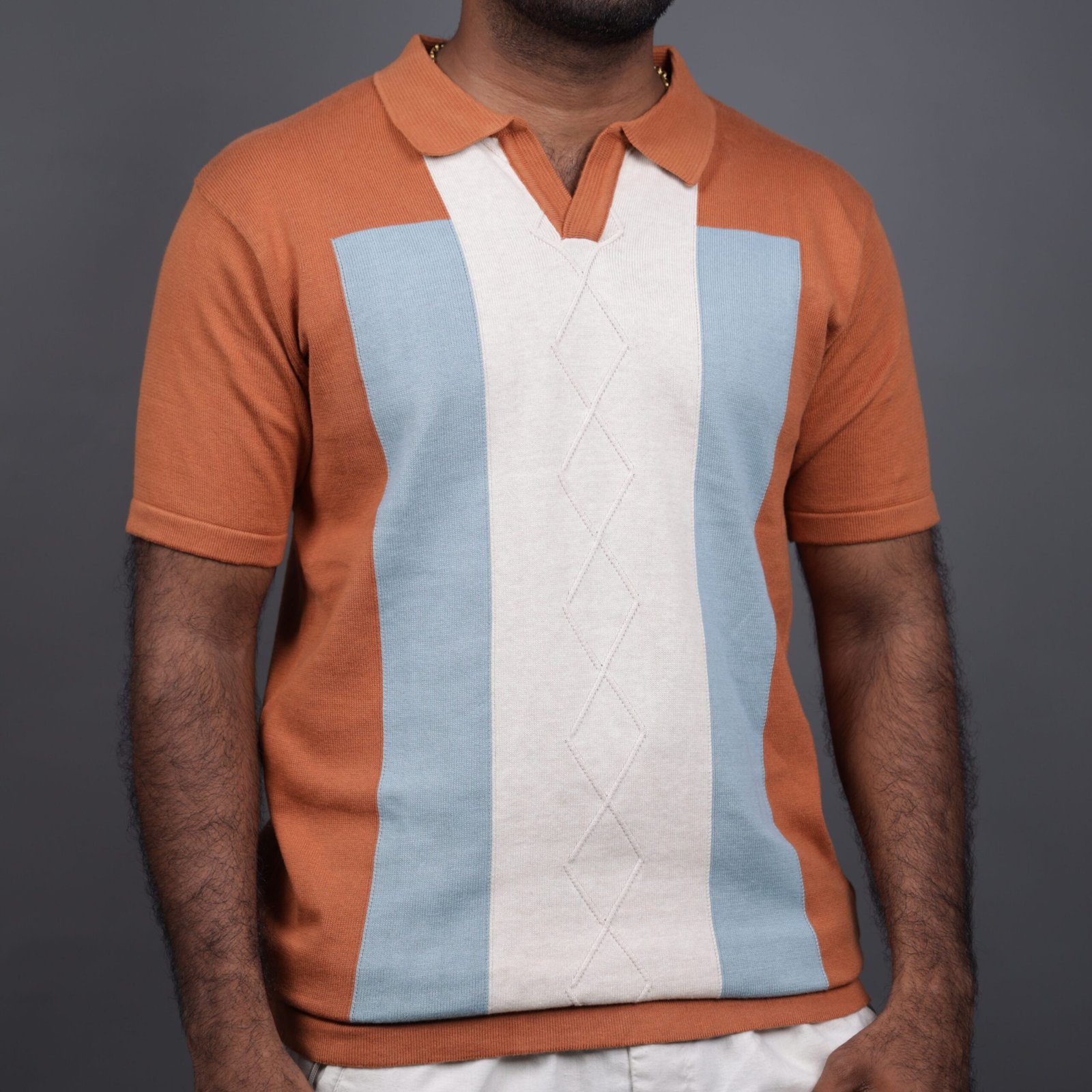 Orange ,Blue and Cream Color Block Knit Polo